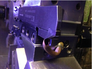 “Daewoo 没有配备高压切削液,标准泵不能为我们产生足够的压力,因此不能在我们原有的切断刀具系统上应用内冷润滑方式,”他解释到。“因此,我们只能使用外冷润滑方式,但总会出现一些切屑控制不良的问题 -切屑会自动回卷并阻碍了切削刃部位的冷却剂供应。”