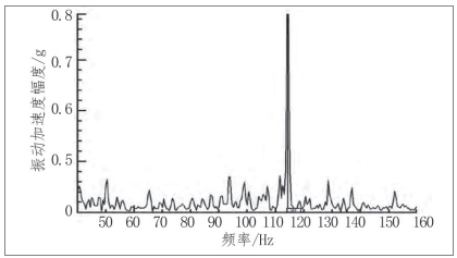 根据以上特征表现进行振动源诊断定位,112 Hz 处幅值 0.8g,正好符合轴承外圈故障频率。112Hz 调制边带间隔 12.5Hz,对应保持架故障频率。