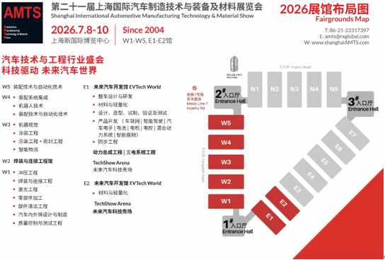 作为专业的汽车技术与工程行业盛会,AMTS 2026第二十一届上海国际汽车制造技术与装备及材料展览会,已从汽车制造技术展示平台跃升为全球汽车智造生态的枢纽,紧跟行业发展及市场需求,更加关注未来汽车开发板块——聚焦智能网联、车身轻质结构、AI科技、信息化、数字化生产等高新科技,一站式展示新能源汽车高新科技,整车材料与设计、开发与试制、验证与测试、三电系统工程、车身及部件冲压、连接及涂装、总装、质量控制及测试、核心部件加工、自动化装配与生产等工程领域创新技术及解决方案。