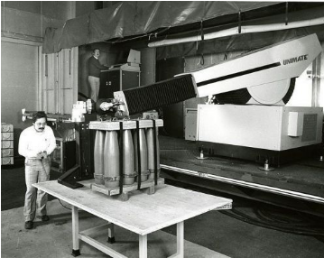 乔治·德沃尔(George Devol)是机器人手臂的发明者,他的名字出现在相关专利上。该项专利于1954年提交申请,最终于1961年获得授予。不过,将那项名为“Unimate”的发明出售给工业世界的是联合创办Unimation公司的约瑟夫·恩格尔伯格(Joseph Engelberger)。