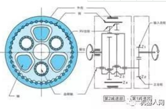 RV减速器是在摆线针轮传动基础上发展起来的,具有二级减速和中心圆盘支承结构。自1986年投入市场以来,因其传动比大、传动效率高、运动精度高、回差小、低振动、刚性大和高可靠性等优点是机器人的“御用”减速器。