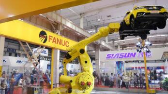 一款超大机器人整车搬运系统在机器人大会上演示(8月15日摄)。8月15日,2018世界机器人大会在北京亦创国际会展中心开幕。大会由论坛、博览会、大赛、地面无人系统活动四大板块组成,来自16个国家和地区的选手将参加机器人大赛。新华社记者 张晨霖 摄