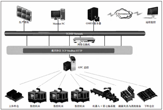 工艺需求外,还要利用工业机器人与数控机床集成技术实现料仓的上下料、自动识别工件的装夹和换产等功能。通过自动化控制系统和生产信息监控系统,实现对整个生产过程的实时监控 [4]。
